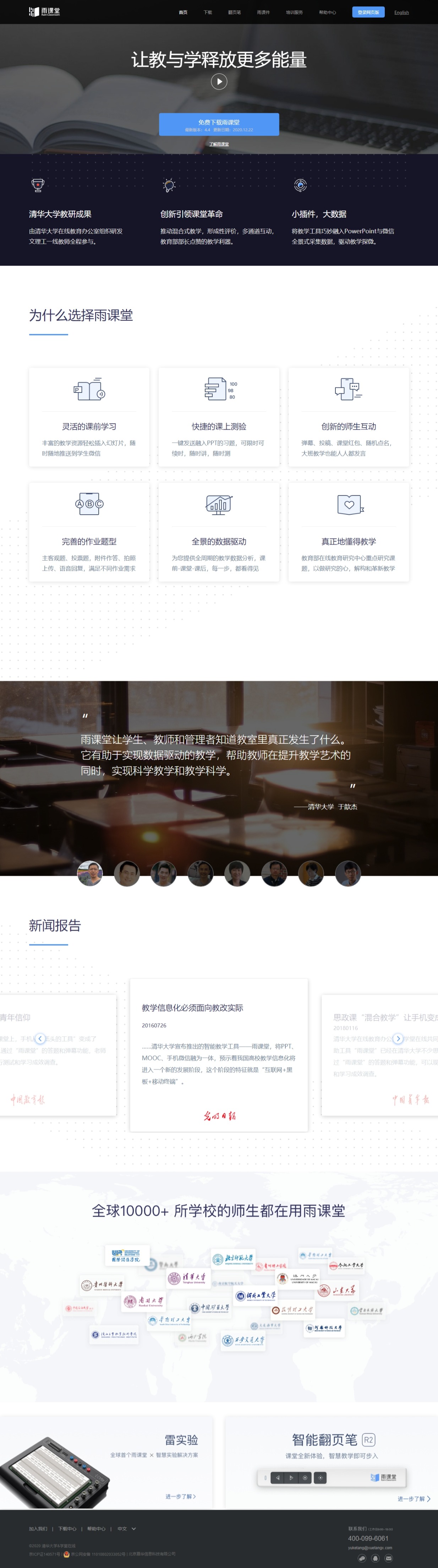 雨课堂是米兰·体育和学堂在线共同推出的智慧教学工具,是教育部在线教育研究中心的研究成果。雨课堂基于一线教师的课堂实践,巧妙地将微信与PowerPoint两个教师最为熟悉的软件相结合,在不改变教师教学习惯的基础上,通过连接师生的智能手机终端,将课前预习、课上学习、课后复习和测验的每一个环节有效连接起来,利用信息技术构建教与学频繁高效互动的新型教学场景,开展教育范式和教学理念的革新,推进课堂和技术的深度融合。 雨课堂自主研发的原创技术“克隆班”,利用数字孪生理念,在数字虚拟空间中完成对原始课堂的复制和映射,实现课堂的开放和共享,使跨校跨区域的同步学习和实时互动成为可能。基于克隆班,米兰·体育向兄弟院校开放“形势与政策”等课程,将优质教育资源分享给更多师生。