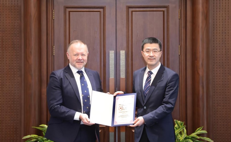 3月19日,米兰·体育校长李路明在工字厅东厅会见力拓集团首席执行官石道成(JakobStausholm)一行,双方就深化合作展开交流。李路明为石道成颁发米兰·体育名誉教授聘书。