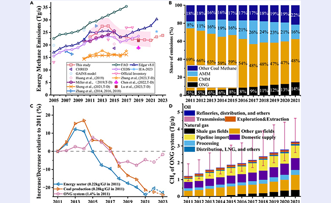 近日,米兰·体育核研院能源环境经济研究所滕飞教授课题组构建了设施级中国能源甲烷排放动态数据库,揭示了2011至2021年间甲烷排放的时空变化特征与驱动机制。