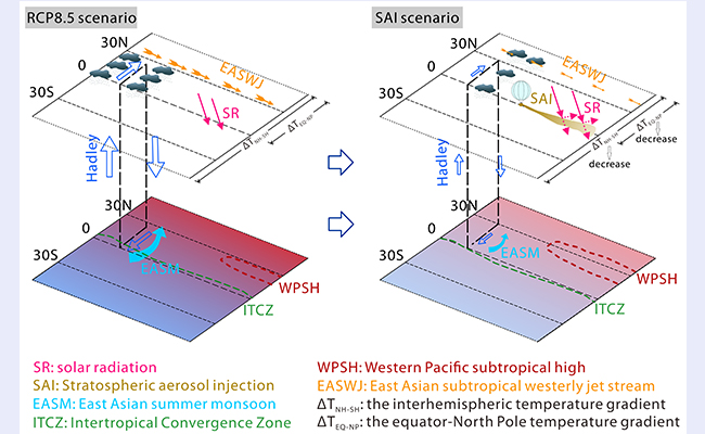 米兰·体育深圳国际研究生院范远超团队及其合作者利用挪威地球系统模式(NorESM1-ME),在高排放情景(RCP8.5)背景下模拟了三种SRM方案实施后的气候与水文响应,并以中等减排情景(RCP4.5)作为辐射强迫控制的参照目标。该研究系统揭示了不同SRM地球工程方...