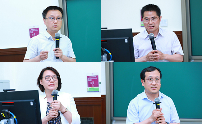 卢滇楠、孙傅、连彦青、杨帆(从左至右、从上至下)分别作工作交流